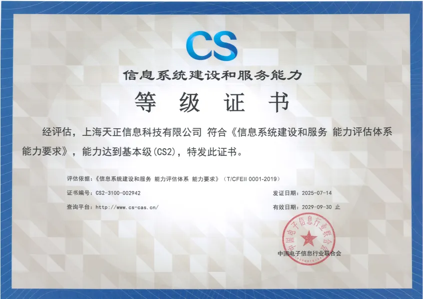 07-21◎祝賀上海天正信息榮獲CS二級證書!